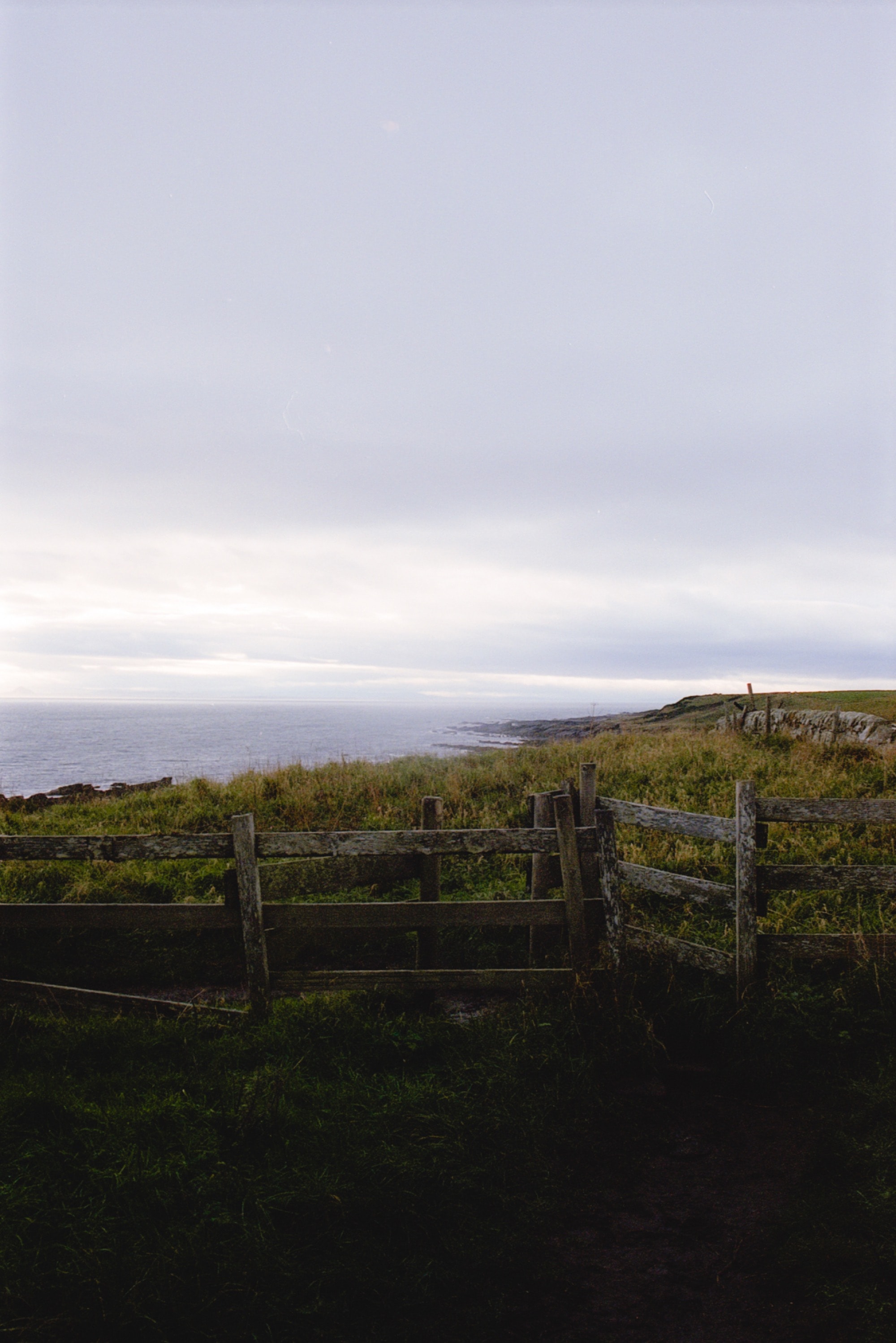 Tuesday morning, cameras loaded with Portra 400 (35mm and 120), and the sun casting over the sea, a walk to start the day was imperative. Although I do have a fondness for exploring towns and their quirks, living in London meant that having multiple coastal walks on my doorstep felt more enticing. Piling on my shearling hat, wool coat and gloves, ready to brace myself for the infamous wind, I headed down to West Sands beach. Contrary to my expectations, the landscape maintained a sense of stillness. Something I hadn't considered was the beauty of the morning light during winter up north. It was 10 am, and the strokes of the sunrise were still in the sky, complementing the purple tone of the sand. With the tide far out, it was possible to cross Eden's Mouth. The clean morning light reflected in the divots of the sand left behind by the retreated sea. Deciding not to enter Eden’s Mouth and avoiding the Air Force, I climbed up into the grass banks. The speckled greens once again perfectly complemented the landscape.